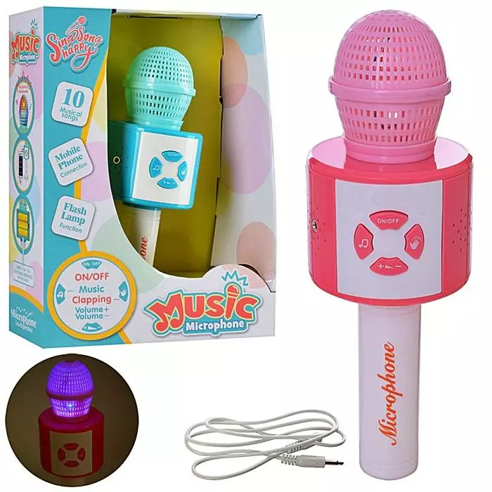 Музичний Мікрофон 1901-1902 (48шт/2) 24см, на батар., 2 кольори, МР3, муз., звук, світло., регул. гучності, в коробці 27*19.5*9см