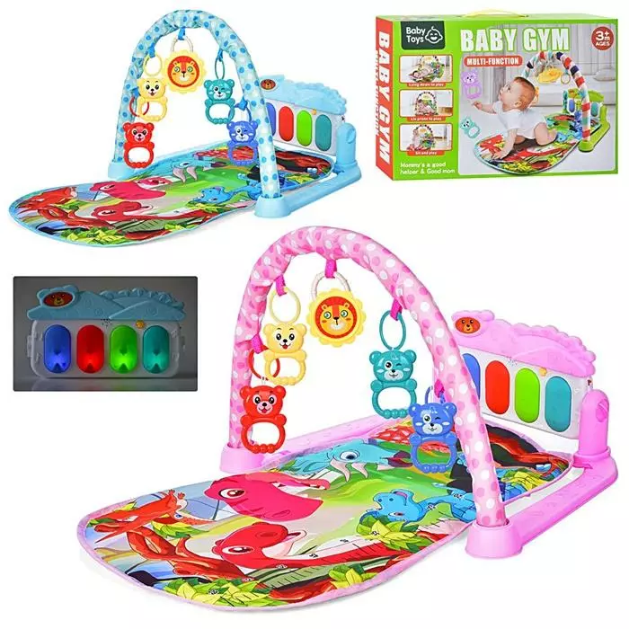 Килимок для малюків 226-16 (24шт) розм.килимка 72*46см, 2 кольори, піаніно, дуга, підвіски-брязкальця 5шт, муз., звук, світло., на батар., в коробці 44*29*9см
