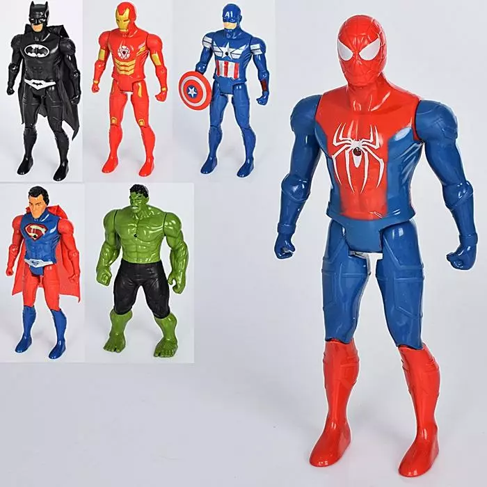 Супергерої 3399-6P (128шт/2) 26см, 6 видів, рухомі. деталі, світ., на батарейках, в упаковці 32*19*6см