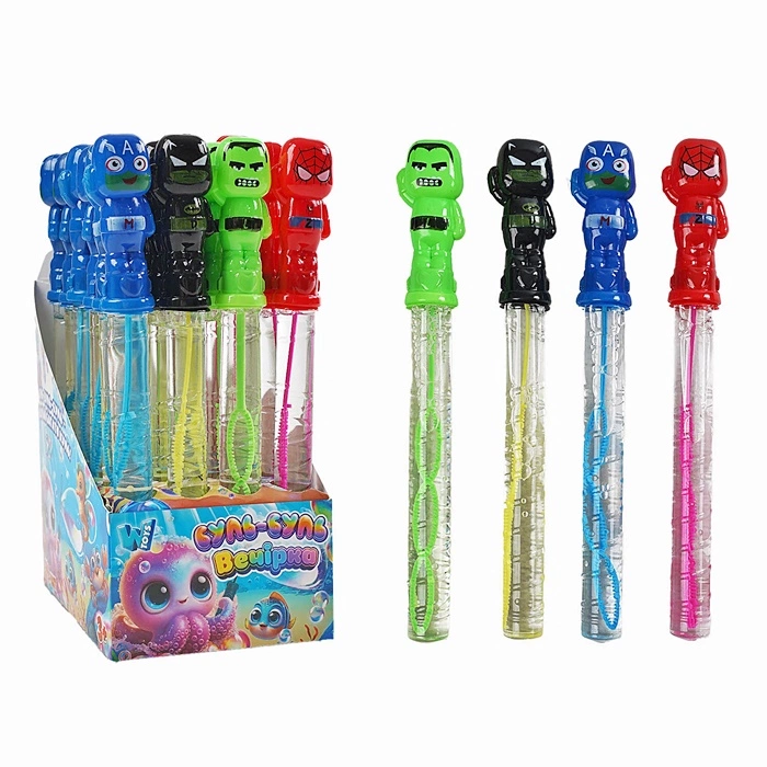 Мильні бульбашки "СГ" 75935 (12шт) палиця 27см, 4види (супергерої), 24шт в коробці 27*18*12см. Ціна за набір