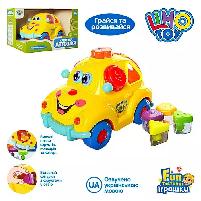Музична розвиваюча Автошка 9170UA (24шт) машинка, каталка, сортер, навчальна (кольори, фрукти, фігури), муз. (укр.мова), світло., на батар., у коробці 23.5*15.5*15см