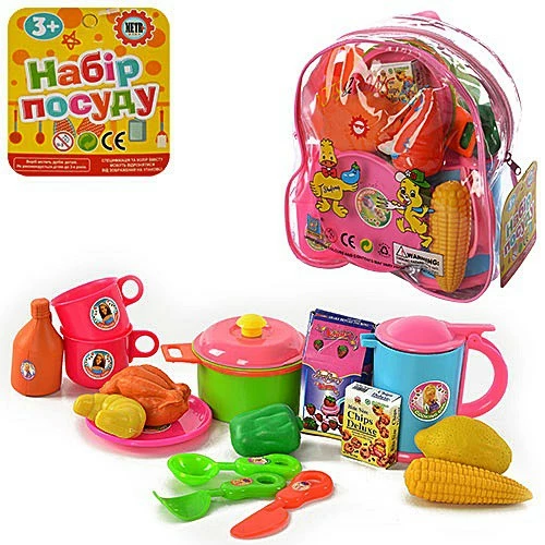 Набір посуду 9952 (48шт/2) каструля з кришкою, кавник, чашки, тарілочки, ложки, вилки, ножі, з продуктами, в рюкзаку 18*16*7см