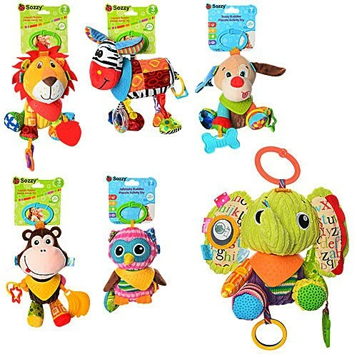 Підвіска на коляску D25447 (40шт) 6 видів, тварини, від 28см, плюш., прорізувач, шуршалка, в пакеті 20*15*9см
