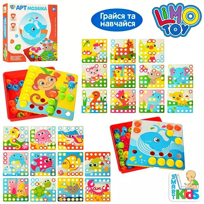 Набір для творчості "Мозаїка" SK0003AB (36шт) 2 види, картинки 12шт, фішки 35дет., аксесуар., в коробці 26 * 26 * 5.5см