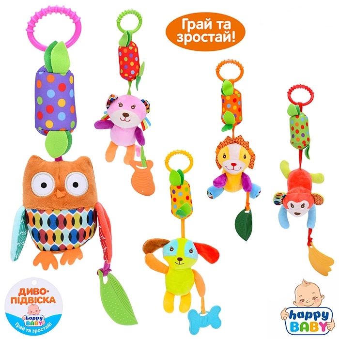 Підвіска на коляску SKK-016 (44шт) 5видів, 45см, тварини, плюш., прорізувач, шелест, звук, в пакеті 19*10.5*7см