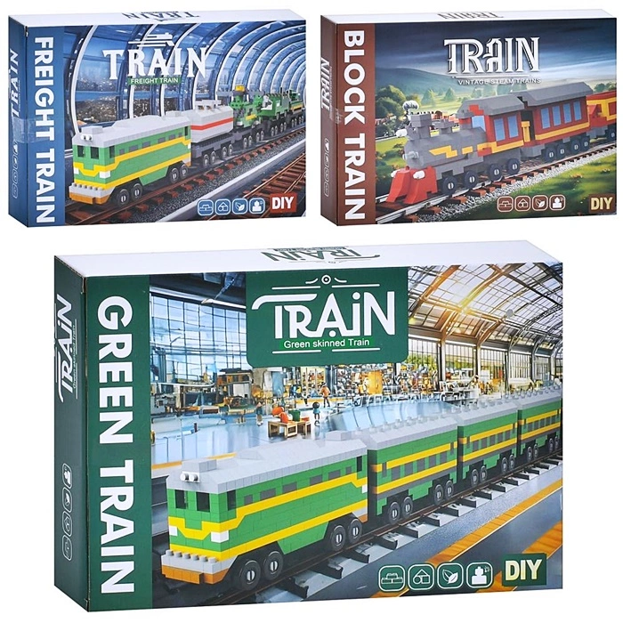 Конструктор ST526-9-8 (24шт) 3 види (1220дет., 1088дет., 1388дет.), поїзд, вагони, в коробці 29*21*5.5см